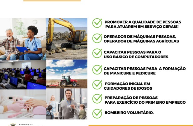 Pensando no seu desenvolvimento, o município oferece oportunidades de qualificação através de cursos profissionalizantes. Uma chance real de se preparar para o mercado de trabalho com conhecimentos práticos e essenciais.