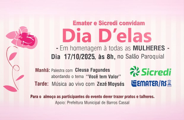 #DiaDelas #BarrosCassal #PrefeituraBarrosCassal #Sicredi #Emater #Mulheres #Evento #Palestra
